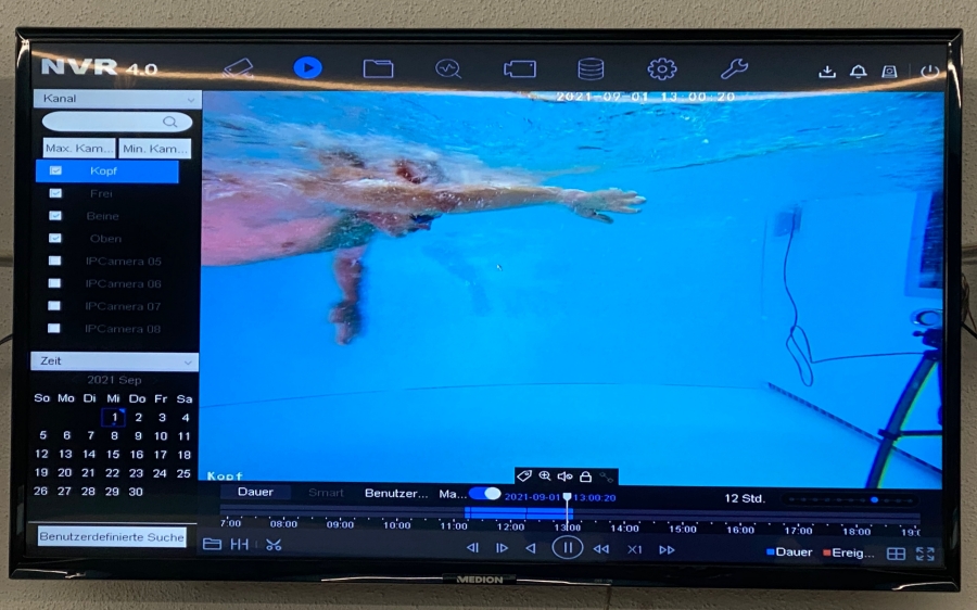 Die Videoaufnahmen aus vier Perspektiven sind auf dem Stand der aktuellen Technik und bieten im 4k-Format und hoher fps-Anzahl beste Möglichkeiten für eine detaillierte Technikanalyse. Diese vier Clips werden jedem Sportler zur Verfügung gestellt. Entweder im Zusammenhang mit einer Auswertung durch Gerhard Budy oder als reines Schwimmangebot.