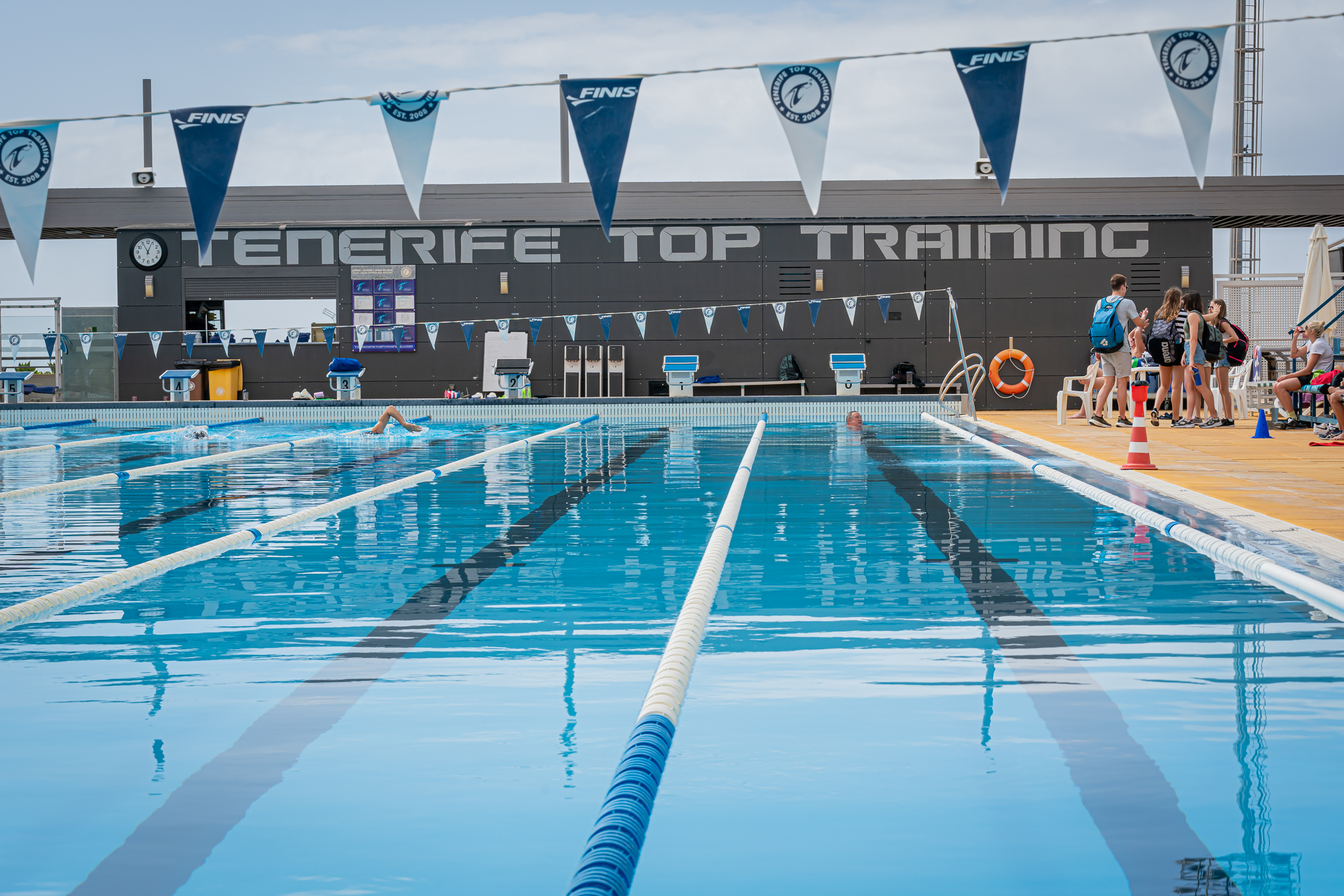 Da wir unser Training im 50m-Becken auf vier Bahnen und im 25m-Becken auf sechs Bahnen durchführen, können wir jeden Sportler adäquat betreuen. Reservierte Bahnen in ausreichender Anzahl bei gleichzeitig limitierter Teilnehmerzahl sind die Voraussetzung für eine tolle Schwimm-Woche auf Teneriffa.