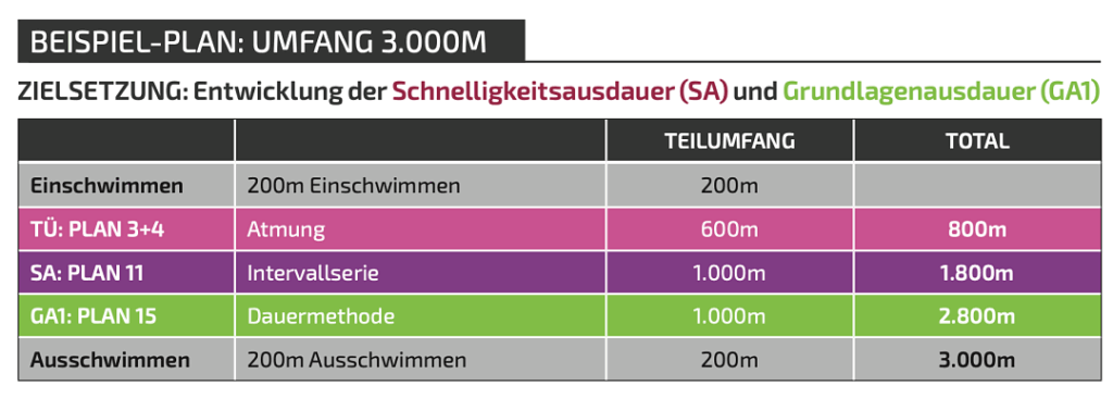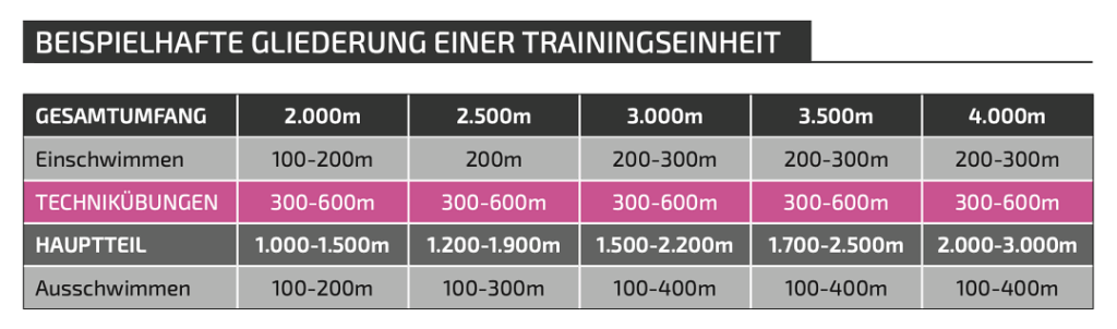 Beispielhafte Gliederung einer Trainingseinheit (Tabelle aus dem Buch „Schneller Schwimmen > KLICK)